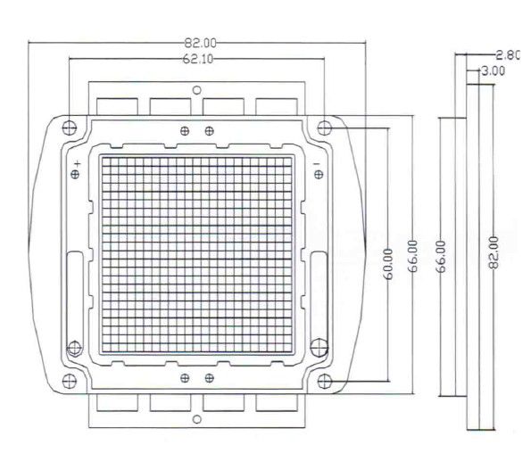 芯片波长:365nm/375nm/385nm/395nm/405nm/415nm可选 使用电压:60.0-70.0V(20串20并)使用电流:6000-7000mA芯片品牌:台湾进口UV晶片灯板尺寸:发光面尺寸:50*50mm;外形尺寸:88*66*3mm(可做功率100-500w)